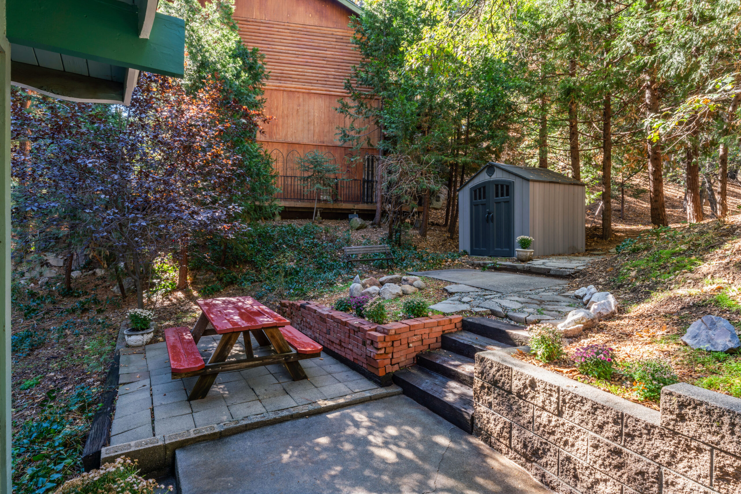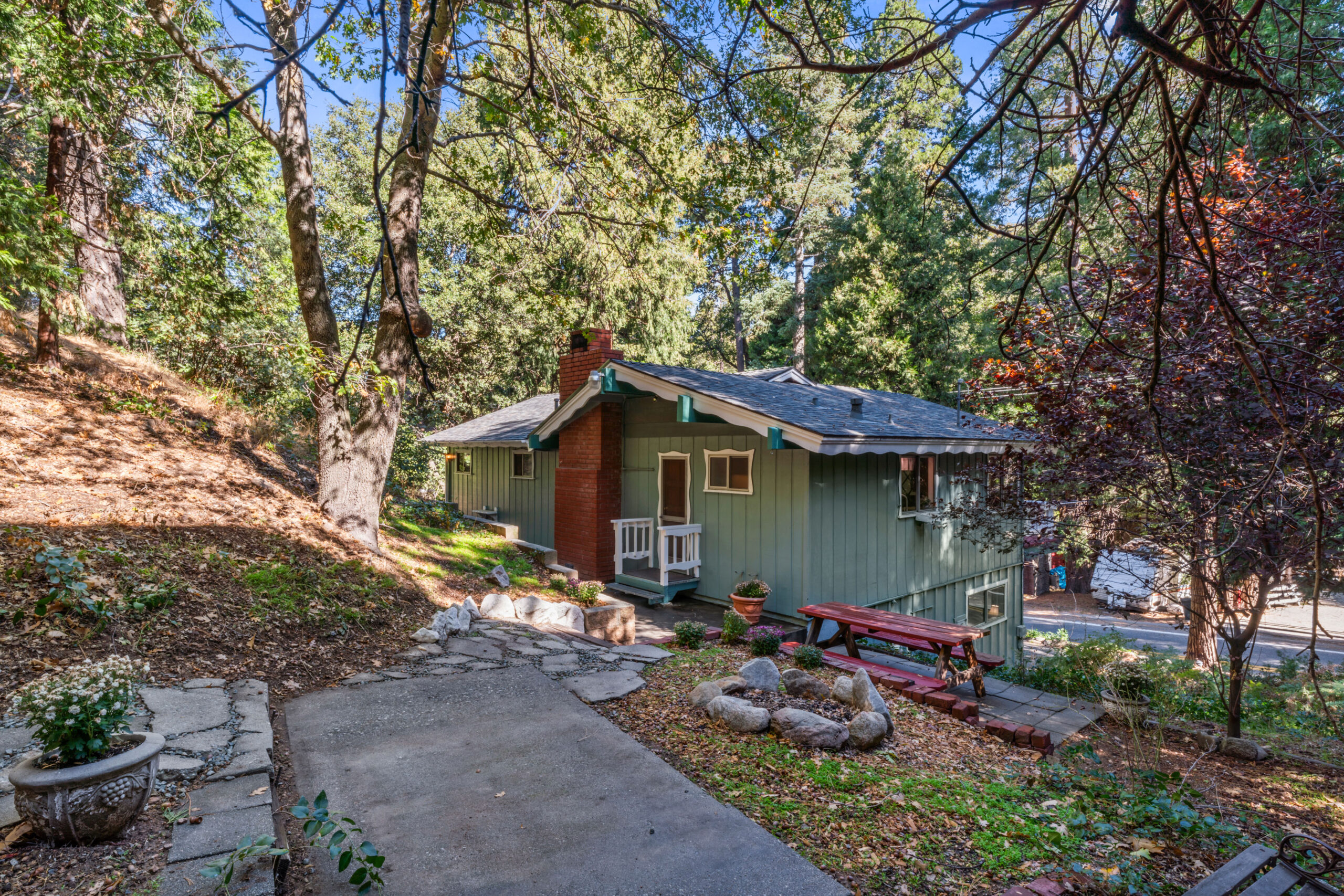 Charming Mountain Retreat Near Lake Gregory Discover this inviting 3-bedroom, 2-bath home with a 2-car garage, nestled in a peaceful, forested setting among towering cedars, pines, and oaks. Enjoy the soothing sound of a nearly year-round stream just across the street, creating a serene mountain ambiance. Inside, you’ll find beautiful open-beam ceilings, an open floor plan, and a granite kitchen perfect for entertaining or everyday living. The living room features a classic brick fireplace framed by built-in bookcases, adding warmth and character. Large windows offer treehouse-like views, where you can often watch deer and other wildlife right from your backyard. A spacious primary bedroom is a retreat on its own, with direct deck access to the east-facing skyline, to enjoy the musical sounds of Dart Creek.
